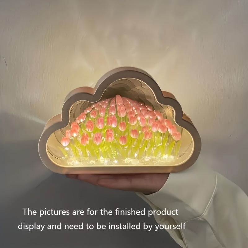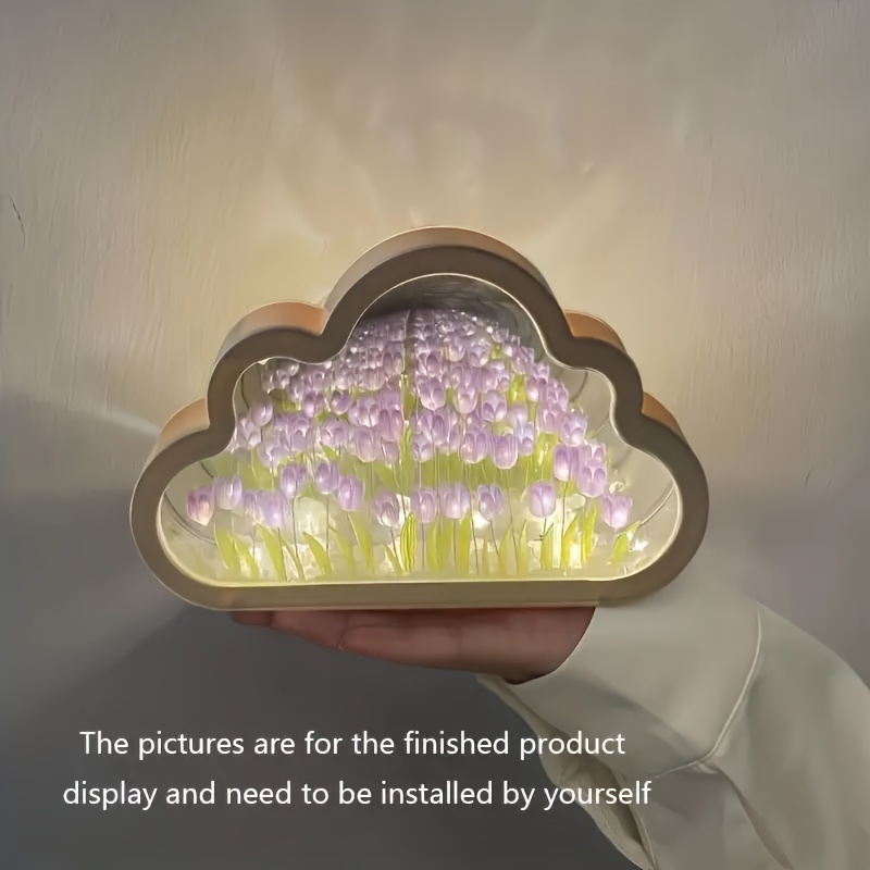 1pc Tulip Flower Sea Night Light, Handmade DIY Creative Giftm Atmosphere Lamp, When The Light Is Turned Off, It Functions As A Mirror, And When The Light Is Turned On, It Becomes A Night Light An Ideal Birthday Gift And Ornament